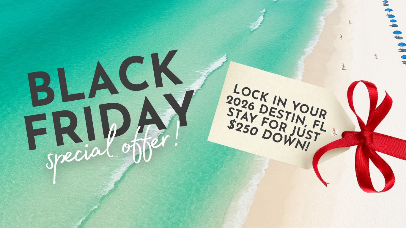 Ready to turn your dream Destin getaway into reality? This Black Friday, Compass Resorts is making it easier than ever. Book Any 2026 Stay, Any Property, Any Dates For Just $250 Down! As a locally owned business, we know how to deliver unforgettable beach vacations. Count on our trusted team to be with you every step of the way, and enjoy total peace of mind with our flexible cancellation policy and full refunds outside of 60 days. Grab your piece of paradise, sugar-white sand and emerald waters are just a click away.